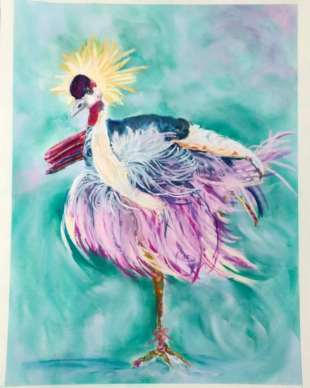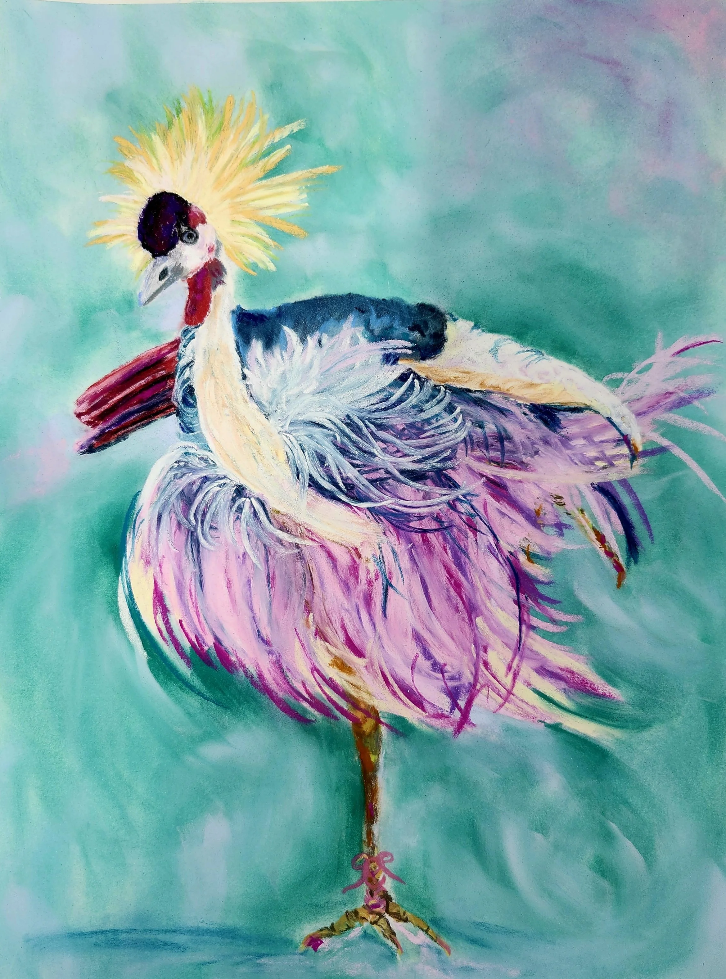 Paintings of sassy and beautifully colored birds in a variety of settings. Eva has fond memories of listening to her grandpa mimic birdsong and the birds replying with their cheerful little chirps. She loves listening and watching birds and paints them to share her joy with you. To commission your favorite winged creature contact Eva