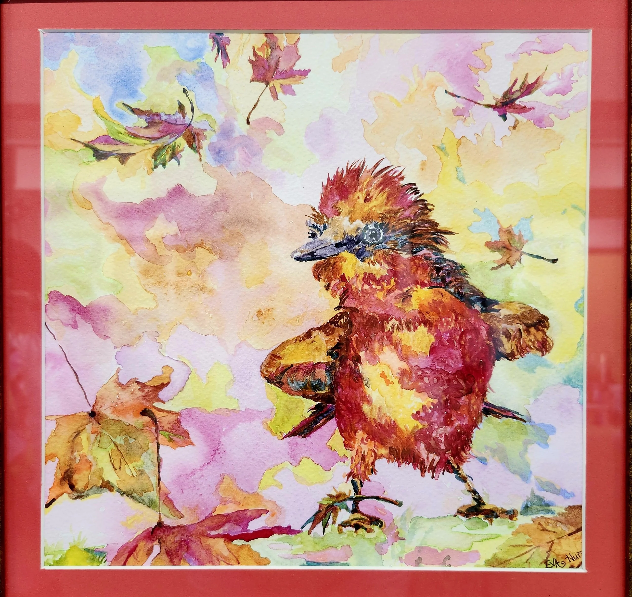 Paintings of sassy and beautifully colored birds in a variety of settings. Eva has fond memories of listening to her grandpa mimic birdsong and the birds replying with their cheerful little chirps. She loves listening and watching birds and paints them to share her joy with you. To commission your favorite winged creature contact Eva
