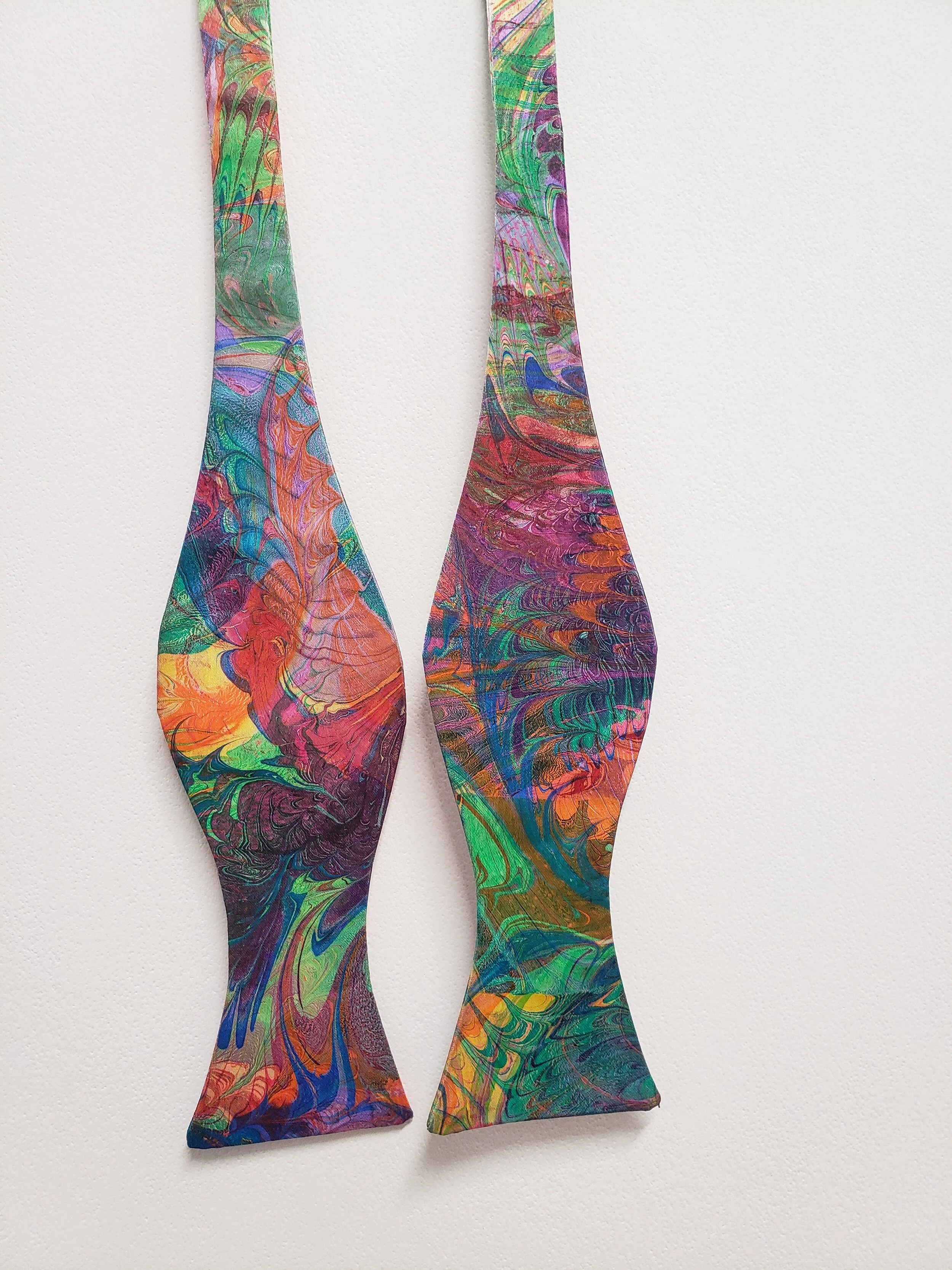 Abstract art you can wear. Each piece is carefully hand painted and finished to last. Many of our ties have coordinating cufflinks! Let Eva customize a tie/set just for you. Distinguish yourself with unique colors and patterns to coordinate your personal style.